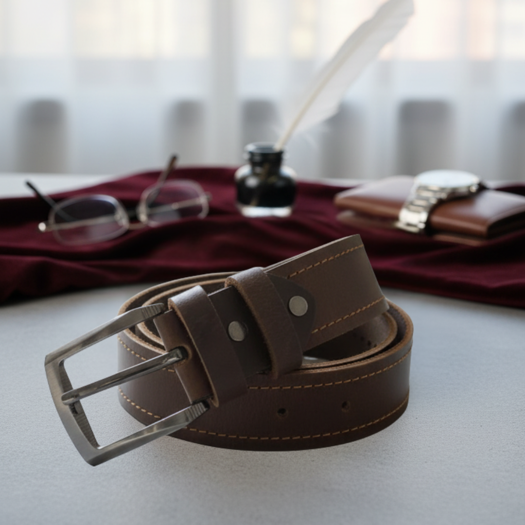 Cavallo Leather Belt is a statement of timeless sophistication. Crafted from premium genuine leather, it combines durability with refined elegance. The sleek metallic buckle and fine stitching details make it the perfect accessory for both formal attire and everyday wear. Designed for the modern gentleman, this belt adds a touch of luxury to any outfit.