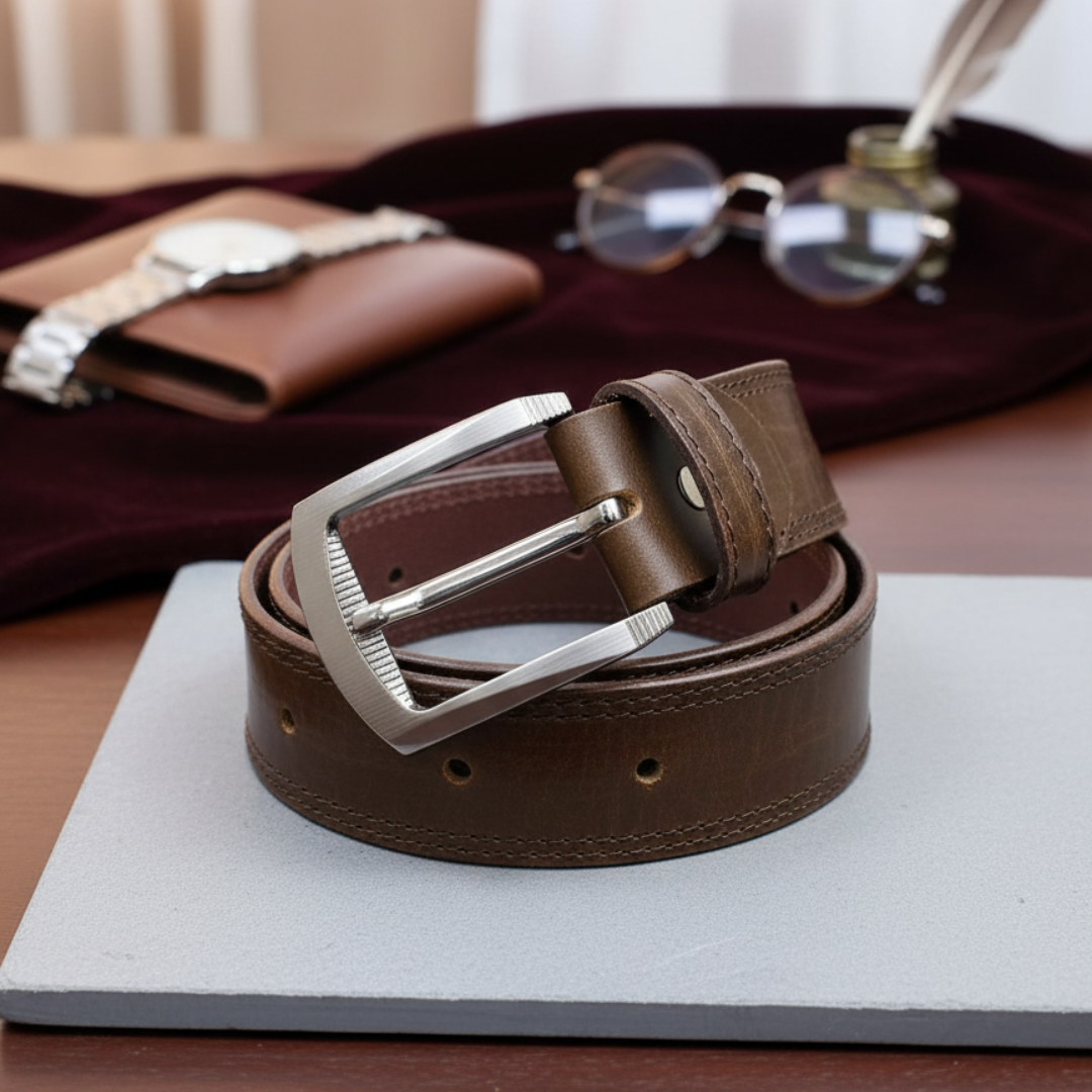 Upgrade your style with this premium brown leather belt, crafted for durability and elegance. Designed with a sleek silver buckle and fine stitching, it adds a touch of sophistication to both casual and formal outfits.