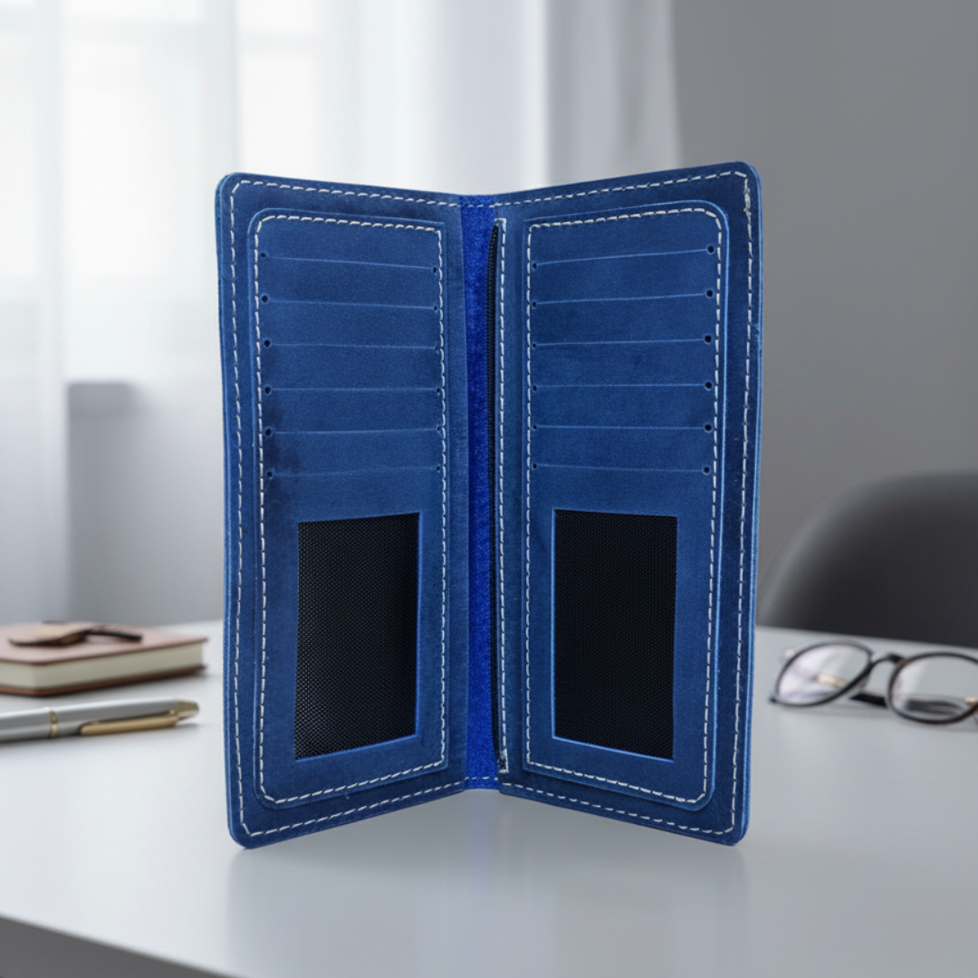 Inspired by depth and confidence, The Mariner in navy blue leather stands out as a bold yet timeless accessory. Perfect for those who enjoy a refined touch of color while maintaining classic style.